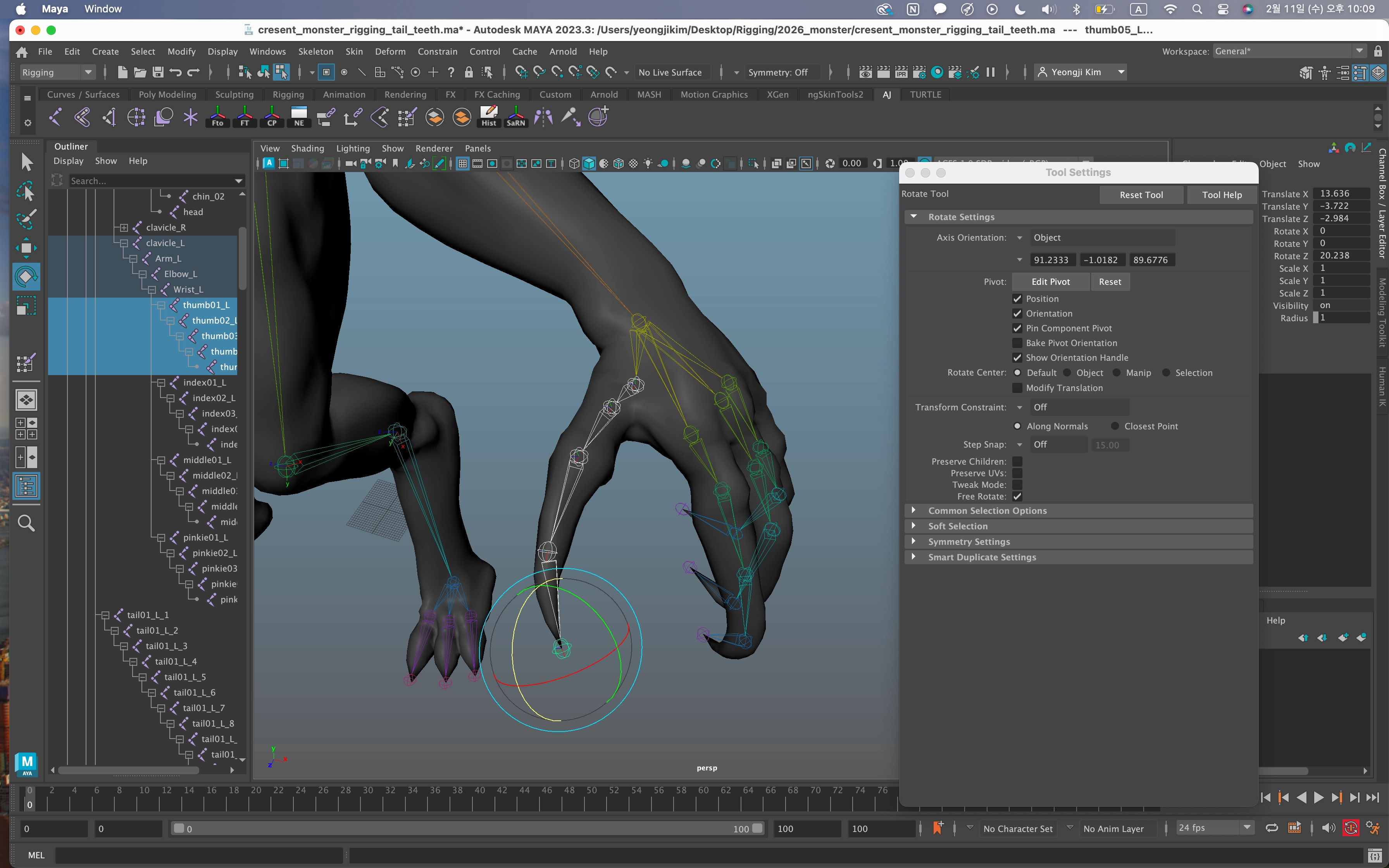 같은 과정으로 Index, Middle, Pinkie 까지 완료하고 paint skin weight 과정까지 완료했다.